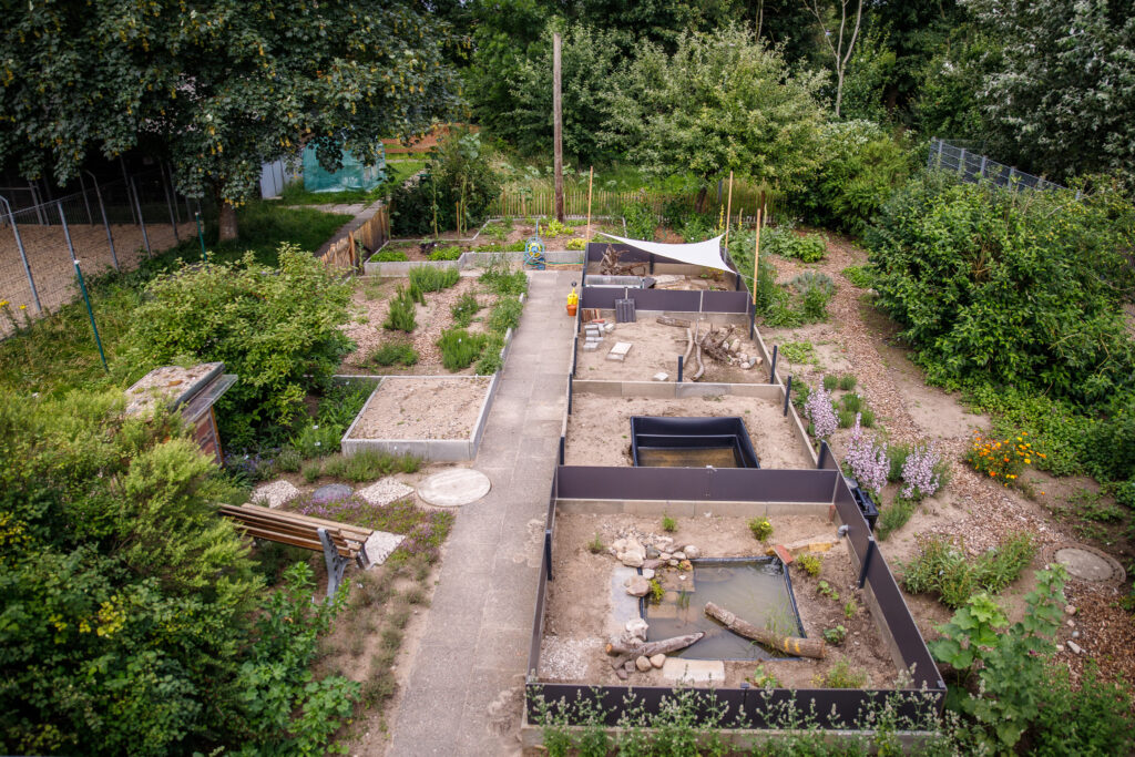 Das Gelände unseres Tierheims hat sich als „Tierschutzgarten Uhlenkrog“ zu einem der schönsten Naturgärten der Region entwickelt. Auf großen Wildstaudenflächen pflanzen wir gezielt bedrohte Arten der Roten Liste. Hecken, Teiche, artgerechte Bienenhäuser und ein Sandarium bieten vielen heimischen Tieren Lebensräume. Aus einem großen Gemüsegarten mit alten Sorten und einem Tier-Kräutergarten versorgen wir unsere Kleintiere. Für den Reichtum an heimischen Arten erhielten wir 2022 den Nachhaltigkeitspreis der Stadt Kiel und wurden 2025 im Rahmen des Projekts „Tausende Gärten – tausende Arten“ von der Deutschen Gartenbau-Gesellschaft mit „Gold“ prämiert.