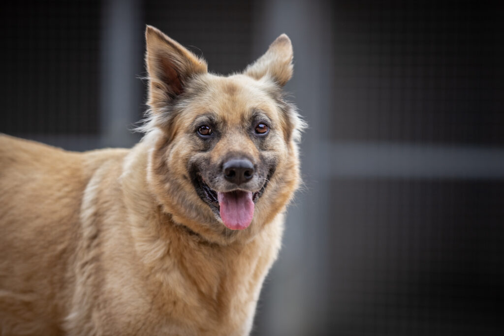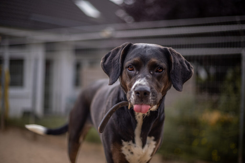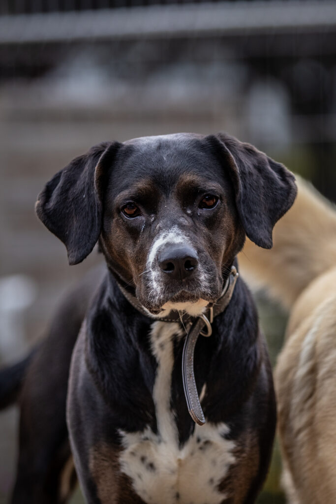 Djoog ist ein freundlicher Hundesenior, der offen auf Menschen zu geht und erstmal unkompliziert wirkt.