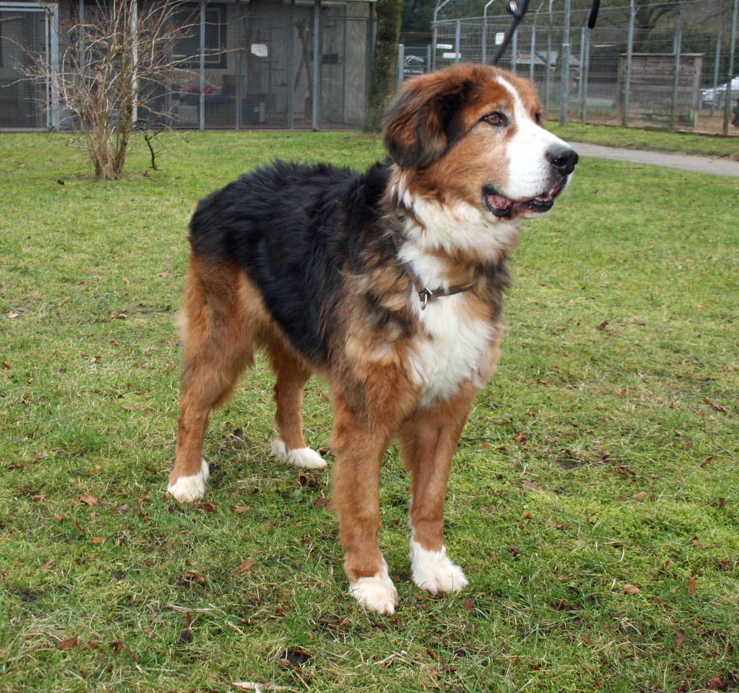 Bo ist ein freundlicher, anhänglicher Rüde. Er trägt gerne seine Leine oder zupft seinen Menschen am Ärmel, um sie auf sich aufmerksam zu machen. Er sollte nicht zu kleinen Kinder. Bo wird noch in absehbarer Zeit geröntgt, da die Vermutung nahe liegt, dass Hüfte oder Wirbelsäule nicht ganz ok sind, er erhält jetzt erst einmal Schmerzmittel.