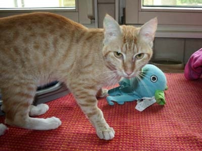 Terror ist ein freundlicher, lebhafter junger Kater, der immer in Bewegung ist und immer Hunger hat.vermittelt August 2011