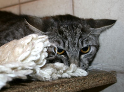 Liebes Tierheim-Team, ich wollte euch mal berichten, wie es Kater Thomsen in der Zwischenzeit bei mir ergangen ist. Erstmal hört er jetzt auf den Namen Tommy. Nach einem halben Jahr kann ich sagen, dass er sich jetzt bei mir eingelebt hat. Die ersten Wochen waren wirklich nicht einfach mit ihm, da er den Kontakt zu Menschen ja gar nicht kannte. Ich wurde regelmäßig angefaucht und es wurde sich den ganzen Tag vor mir versteckt. Als nach 3 Wochen keine Besserung eintrat, habe ich gemerkt, dass es der falsche Weg war ihn in einem Raum an mich zu gewöhnen. Also habe ich den Moment abgewartet bis er „sein“ Schlafzimmer verlassen hat und dann einfach die Tür zu gemacht, damit er an Bijou’s und meinem Alltag teilhaben muss. Und auf einmal ging alles ganz schnell. Innerhalb einer Woche konnte ich langsam anfangen ihn zu streicheln und er kam immer angelaufen, wenn es etwas zu fressen gab. Und dann merkte ich, wie er einen Schalter in seinem Kopf umgelegt hat. Er kam zu mir und lies sich kraulen und streicheln, als hätte er nie Angst vor mir gehabt. Heute, nach einem halben Jahr, kann ich sagen, dass ich froh bin Tommy zu haben. Auch wenn er und Bijou sich manchmal streiten hat er unser Leben wirklich bereichert. Ich kann jedem raten nicht sofort vor „Problemkatzen“ zurückzuschrecken. Denn ich merke jeden Tag, wie froh Tommy ist, dass er bei mir ist und jemanden hat, der ihn einfach lieb hat .